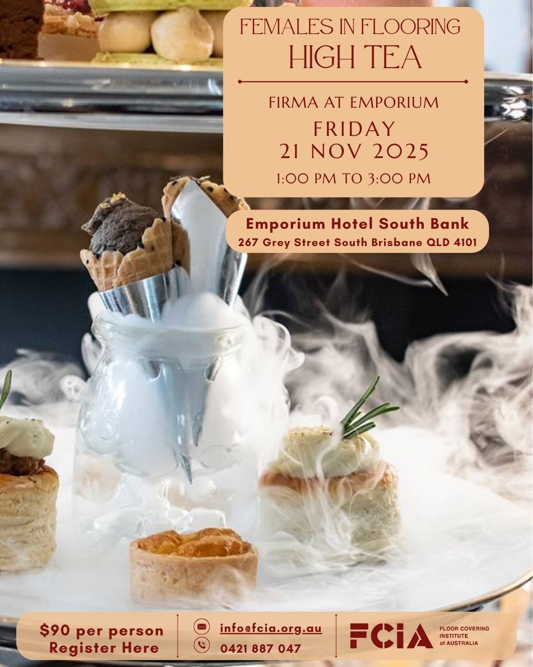 Join us for a delightful afternoon of High Tea at Firma, Emporium Hotel, as we bring together women across the flooring industry for an inspiring and engaging event. Enjoy meaningful conversations, exchange experiences, and connect with peers who share your passion for the craft.